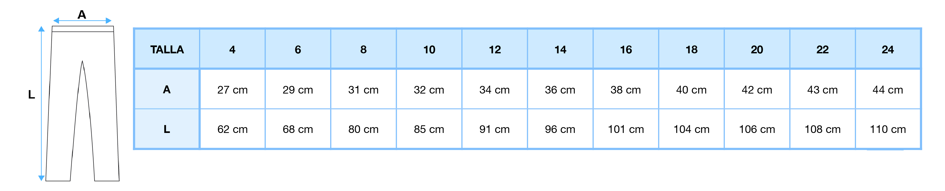 Mesures pantaló llarg de vestir primària col·legi Sant Andreu