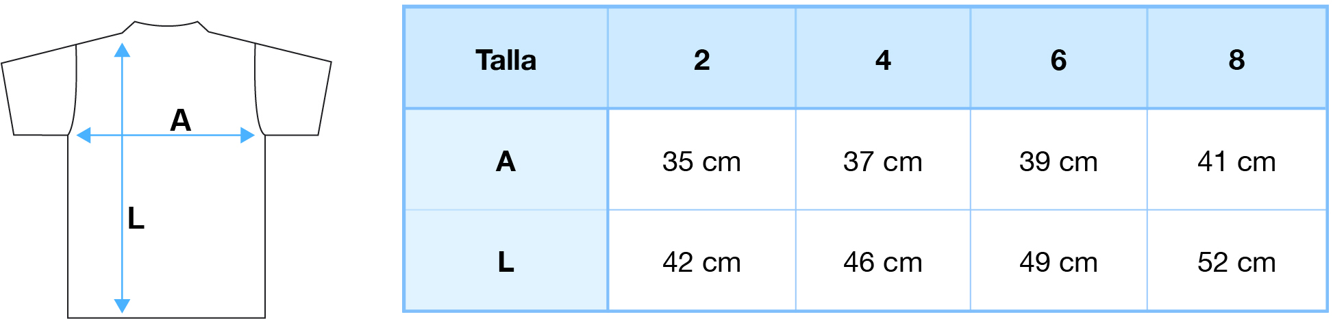 Medidas camiseta infantil manga corta colegio Sant Andreu