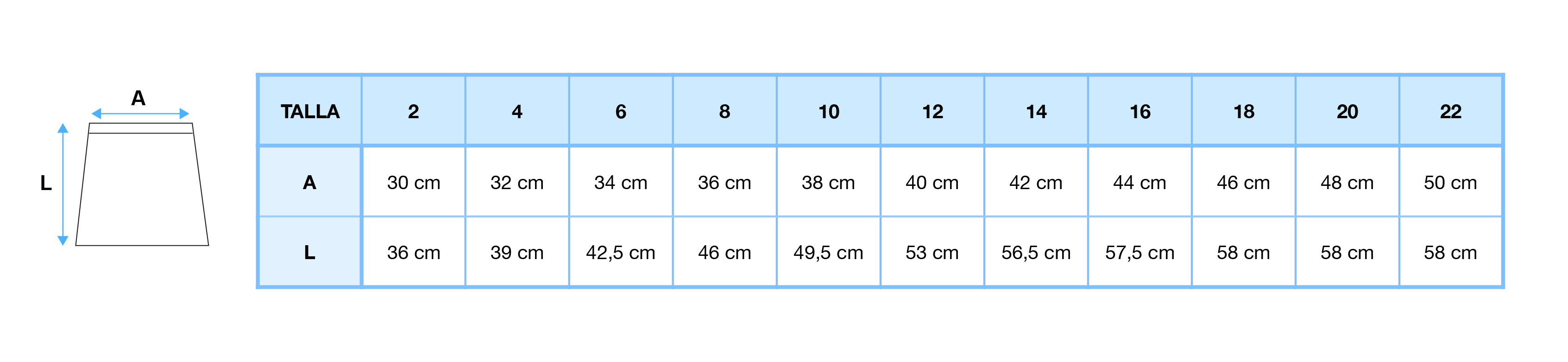 Medidas falda colegio Sant Andreu.